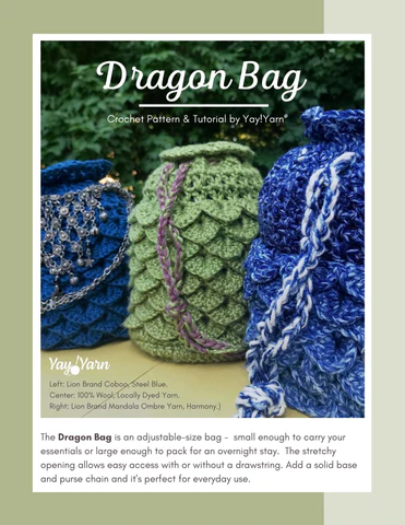 The Dragon Bag is an adjustable-size bag - small enough to carry your essentials or large enough to pack for an overnight stay. The scrunchie opening means stretchy, easy access with or without a drawstring. Add a solid base and purse chain and it's perfect for everyday use.